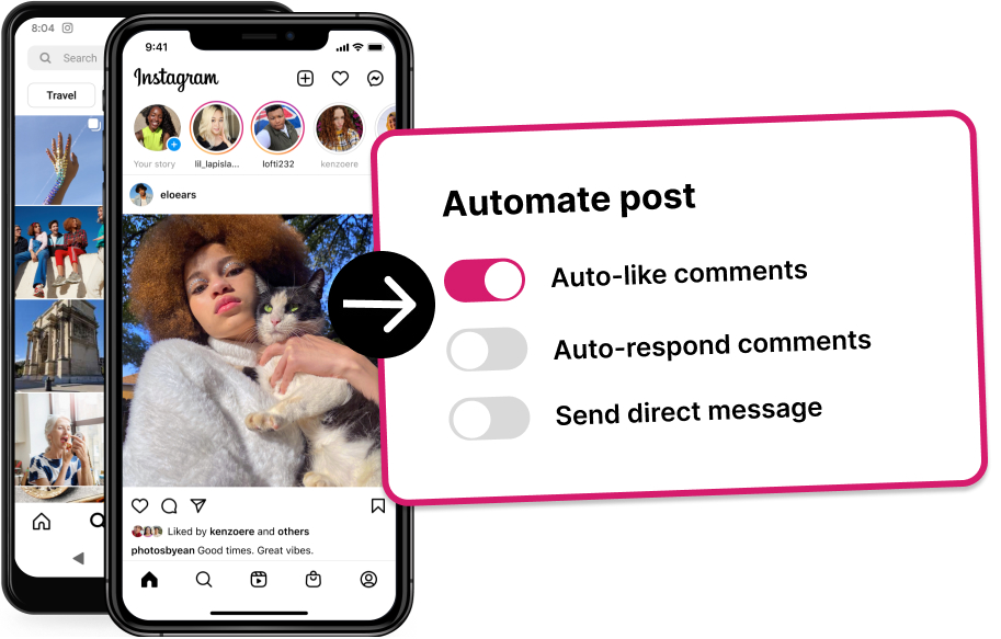 Auto-like posts and auto-respond to comments, so you can maintain high engagement without lifting a finger