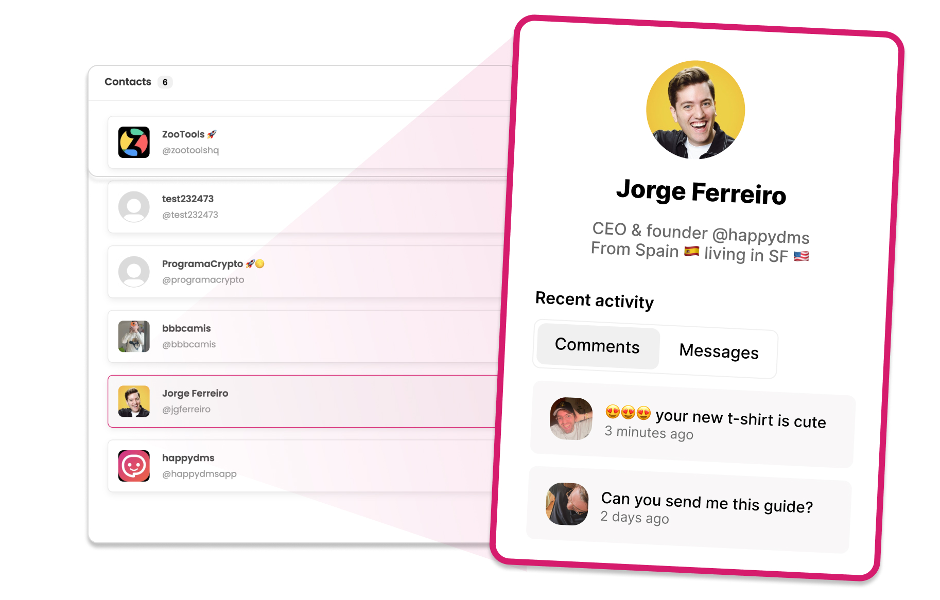 Recommend happydms to your community and earn money, merch and VIP support with a direct access to the CEO & team